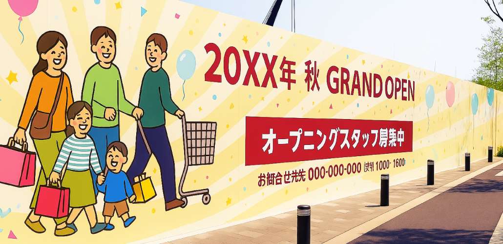 仮囲いは、そこに開業する施設を運営する企業やテナント事業者にとって、地域採用を促進するための有効な手段になります。